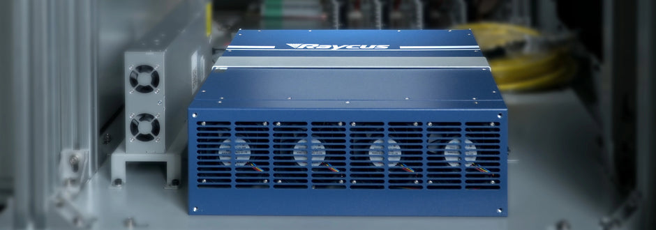 Both the laser source and the cutting head are air-cooled. The cutting head is a custom, compact, auto-focus air-cooled head designed for minimal footprint and simplified installation — no external chilled-water loop required.